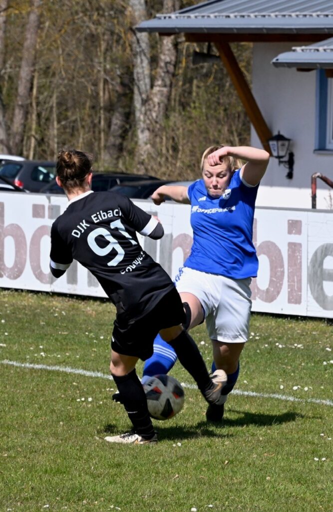 Doch anstatt dem Spiel nun Stabilität zu verleihen, ließ der FC in der Folge nach. Die Zweikampfhärte nahm ab, Eibach fand besser in die Partie und belohnte sich: Amelie Eisner glich mit einem satten Abschluss zum 1:1 aus.